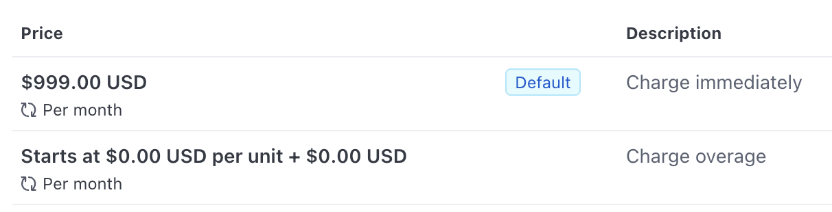 - Usage-based fee: the amount charged for overage. Reset every month.