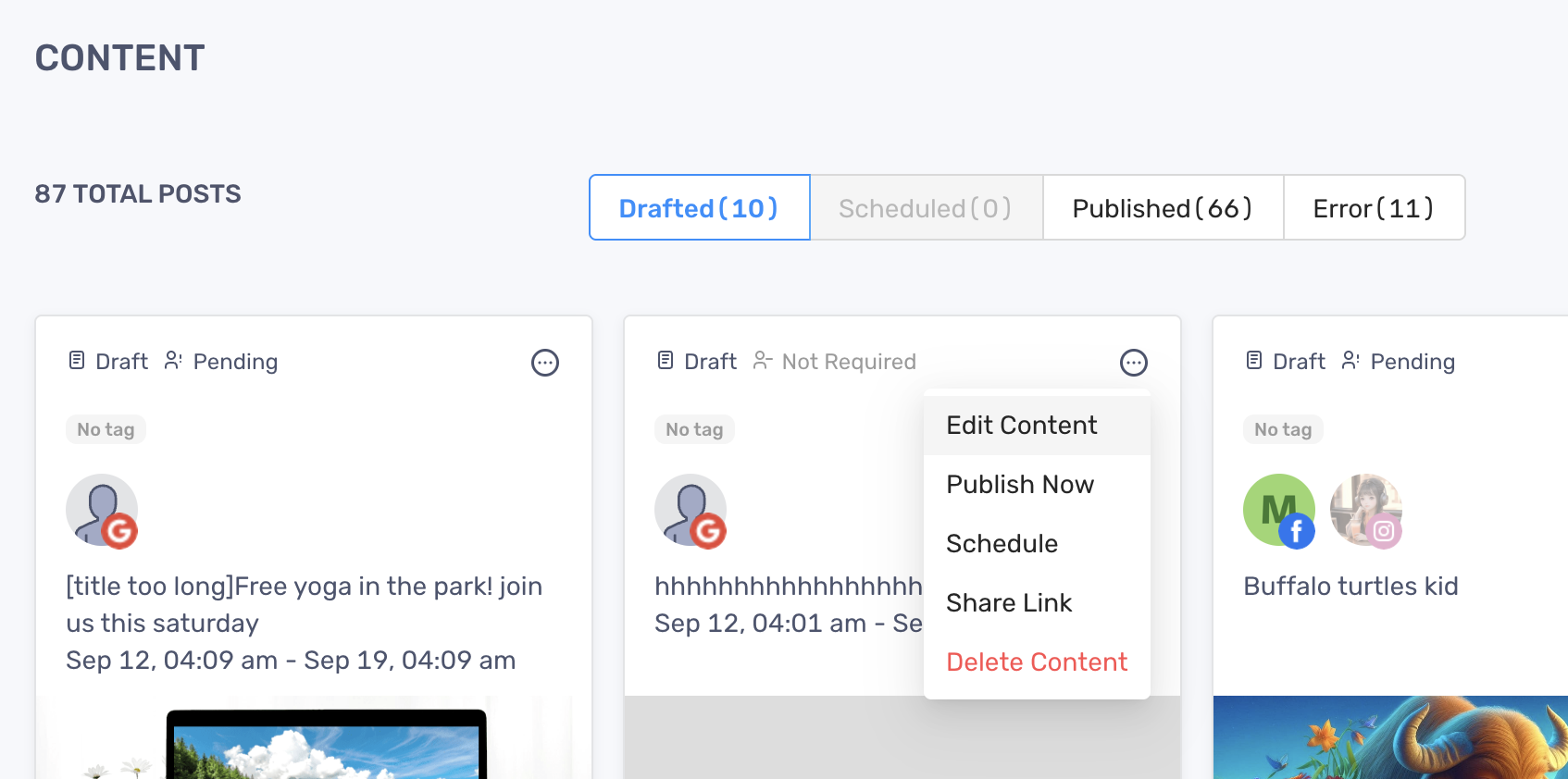 Section titled “Edit a post”- Go to the Social page and select Content on the top menu